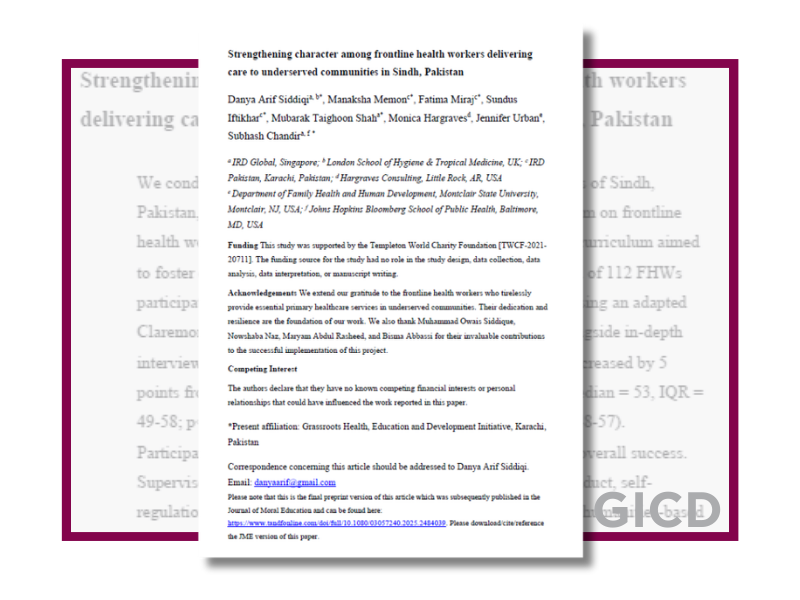 The Jubilee Centre is the lead partner of the Global Innovations for Character Development (GICD) Platform which offers capacity building support to Templeton World Charity Foundation (TWCF) grant-funded projects primarily located in low- and middle-income countries.